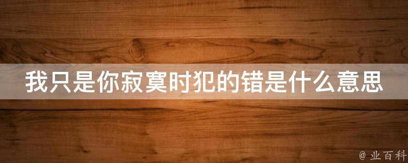 我只是你寂寞时犯的错是一种比喻,表达的是对方并不是真正喜欢自己,而只是在自己孤独、需要陪伴的时候才出现并表达出爱意,似乎自己只是一个填补对方空虚和寂寞的工具。这可能意味着对方只是在需要感情的时候才向你表达爱意,而平时则可能并不关心你的感受和需求。