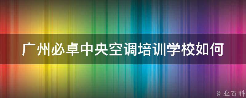 广州必卓中央空调培训学校拥有优美的育人环境、雄厚的师资力量、严格的教学管理、合理的专业设置、先进的教学设备。是首批国家中等职业教育改革发展示范学校;广州市人力资源和社会保障局直属公办国家级重点技工学校;首批国家高技能人才培训基地;全国教育科研先进集体;全国职业教育管理创新学校;广东省技工学校竞争力20强单位。