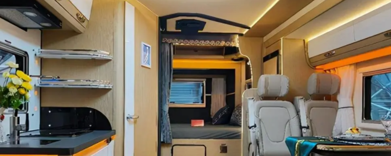 房车后挂摩托车架不占空间。在房车的后部外面安装一个专门的铁架子,用来固定摩托车,既不影响房车的平衡,又不占用内部空间,使用起来还方便,很实用。房车最大的特点就是兼备房与车两大功能,可以睡觉、做饭、上卫生间、储物、会客。