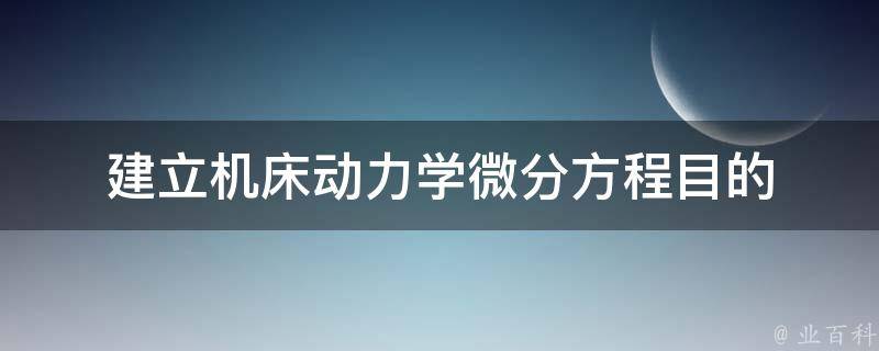 建立机床动力学微分方程的目的是用于描述某种类型的物理现象,如速度、加速度等,从而帮助研究人员更好地理解实际现象。同时,这些方程也可以帮助研究人员更快地推导出基他物理量的变化情况,如质量、动量、势能等。此外,微分方程还可以用于求解经典力学问题,计算飞行物体的运行轨迹、绘制质点与物体的运动曲线等,从而研究力学中物体之间的相互作用。