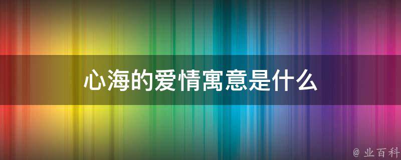 心海的爱情寓意着一个人内心深处的爱情。这种爱情可能是一种浪漫、深刻的,甚至是难以言表的爱,它可能超越了时间和空间,让一个人无法忘怀另一个人。心海的爱情是每个人内心深处的美好情感,也是人类永恒的话题。