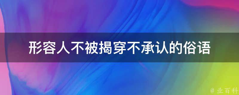 最佳答案形容人不被揭穿不承认的俗语是不见棺材不落泪,比喻不到彻底失败的时候不肯罢休。这个词语讲的是古代清才安鸿渐特别幽默与滑稽,他十分害怕老婆,岳父病故,两人前去吊唁,在路上他们就开始大哭。他老婆为人特别严格,见老公光哭而没有眼泪,觉得奇怪问为什么?安鸿渐回答说用帕子擦了,其妻特别嘱...