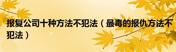 大家好,我是小科,我来为大家解答以上问题。报复公司十种方法不犯法,最毒的报仇方法不犯法很多人还不知道,现在让我们一起来看看吧!