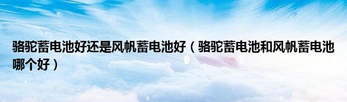 大家好,小联来为大家解答以上的问题。骆驼蓄电池好还是风帆蓄电池好,骆驼蓄电池和风帆蓄电池哪个好这个很多人还不知道,现在让我们一起来看看吧!