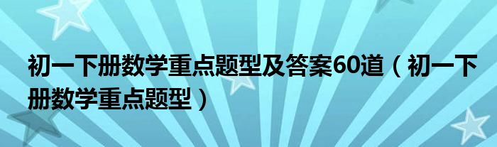 大家好,我是小科,我来为大家解答以上问题。初一下册数学重点题型及答案60道,初一下册数学重点题型很多人还不知道,现在让我们一起来看看吧!
