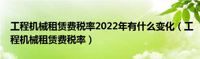 大家好,小联来为大家解答以上的问题。工程机械租赁费税率2022年有什么变化,工程机械租赁费税率这个很多人还不知道,现在让我们一起来看看吧!