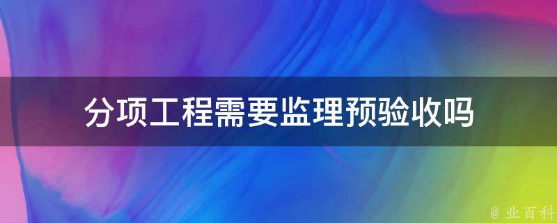 最佳答案分项工程需要监理预验收。子分项工程完成后施工单位自己检查验收通过,然后填写报验单并送至监理处报验;监理在收到报验单的24小时内进行现场验收,验收合格后签署报验单;待监理签署报验单后才可进行下道工序的施工。