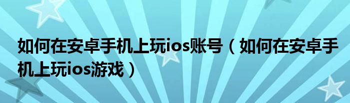 如何在安卓手机上玩ios账号(如何在安卓手机上玩ios游戏)
