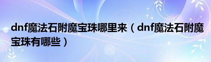 dnf魔法石附魔宝珠哪里来(dnf魔法石附魔宝珠有哪些)