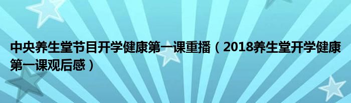 大家好,小华来为大家解答以上的问题。中央养生堂节目开学健康第一课重播,2018养生堂开学健康第一课观后感这个很多人还不知道,现在让我们一起来看看吧!