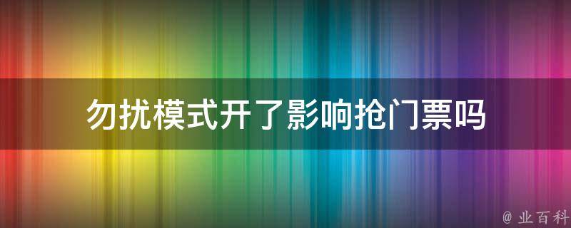 勿扰模式开了不影响抢门票,因为勿扰模式只是将手机的通知关闭,不会影响手机的网络连接。在抢票过程中,手机的网络连接是关键,而勿扰模式并不会对网络连接造成影响,因此不会影响抢票的成功率。但是,在抢票前最好将勿扰模式关闭,以避免错过任何重要的通知。