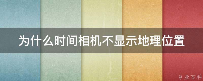 最佳答案1、相机或手机没有开启定位功能,在拍照前,需要确保相机或手机的定位功能已经打开。在定位功能打开状态下,拍摄的照片会自动记录下所在位置的经纬度等信息。2、相机或手机的定位精度不够,如果相机的定位精度不够或者信号不好,就有可能无法记录下对应的地理位置信息。可以尝试使用更好的手机地图...