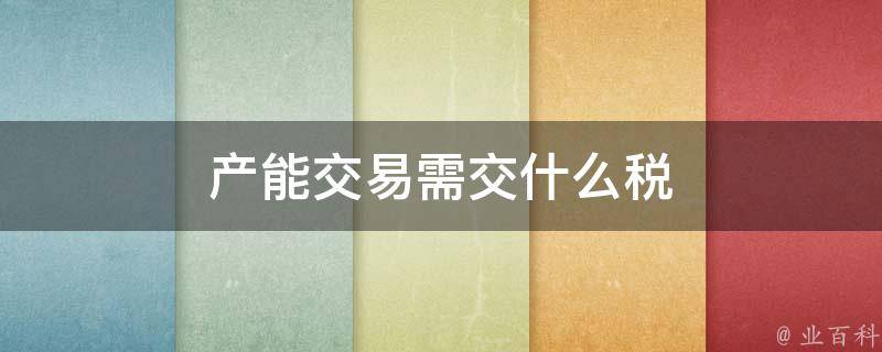 产能交易需交什么税