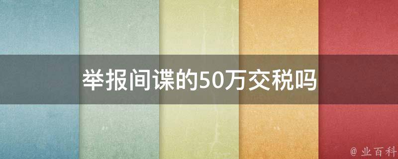 最佳答案举报间谍的50万不交税。依据《财政部国家税务总局关于个人所得税若干政策问题的通知》(财税字[1994]20号)第二条第(四)项规定:个人举报、协查各种违法、犯罪行为而获得的奖金暂免征收个人所得税。因此举报间谍而获得的奖金暂免征收个人所得税。