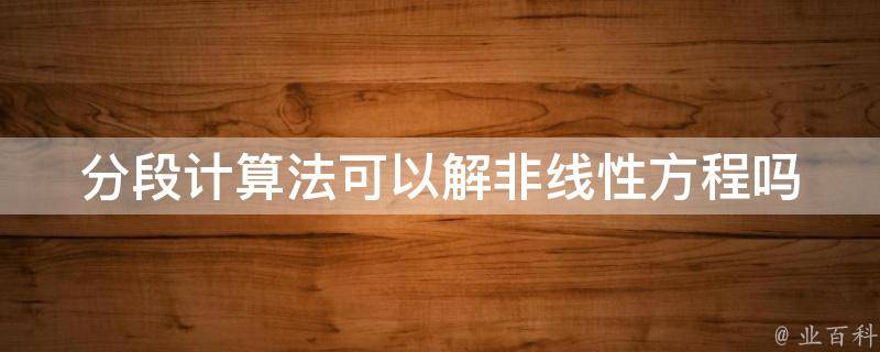 分段计算法可以解非线性方程吗