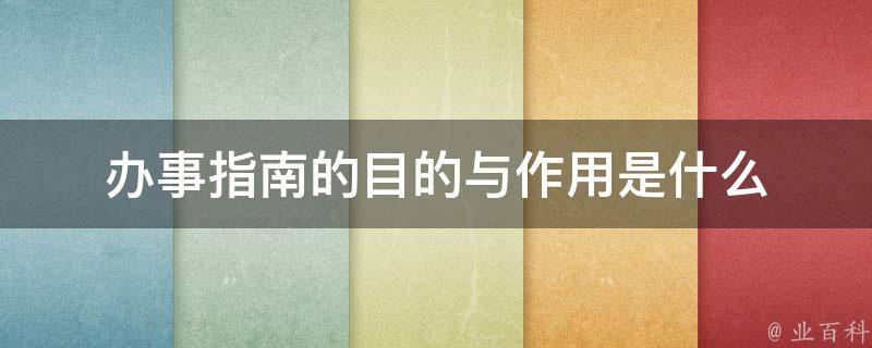 办事指南的目的是规范审批项目运行、方便企业群众办事、提高审批效率、预防权力腐败。办事指南的作用是帮助企业和群众了解行政审批政策和程序,使他们能够准确查阅和获取所需信息。提高办事便利度和满意度,使企业和群众能够更加方便快捷地办理审批事项,减少办事成本和时间。