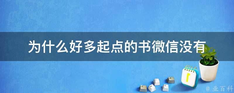 起点的书微信没有,主要是因为版权问题和网络卡顿等原因。微信读书和起点读书是不同的阅读平台,它们所提供的内容也有所不同。微信读书主要提供的是网络小说,而起点读书则主要提供的是原创小说。