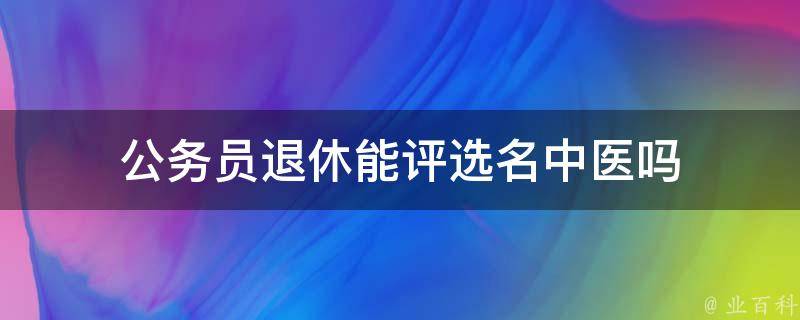 最佳答案公务员退休不能评选名中医,公务员和退休人员不得参加职称评审。包括参照公务员法管理的人员、离退休人员和达到法定退休年龄的人员。考核认定要符合4个前提条件:一是全日制院校毕业生;二是从事本专业或相近专业技术工作;三是国家已实行以考代评的专业除外;四是考核合格、工作称职,工作期间完成...