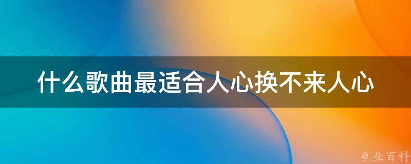 适合人心换不来人心的歌曲有很多,如《问病》《前世欠你的情泪》《愿得一人心》《伤心等候》等。歌曲带给人们的是全方位的听觉享受,优美的旋律使人能够产生高尚的想法,丰富人类的感情,促进他们理解人类情感的深邃内涵,达到心灵的和谐以及与自然的契合。