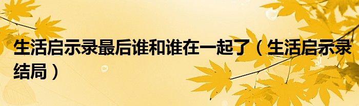 大家好,我是小科,我来为大家解答以上问题。生活启示录最后谁和谁在一起了,生活启示录结局很多人还不知道,现在让我们一起来看看吧!