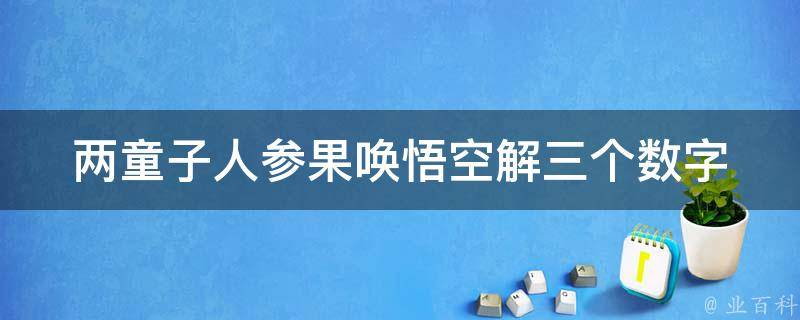最佳答案两童子人参果唤悟空解三个数字是230。因为两是指数字2,参与数字3拼音相似,空说明是0,所以,两童子人参果唤悟空解三个数字是230。在数字谐音中,2代表爱、两人世界;3代表想念、生命、生活;0代表圆满、完美、无尽。