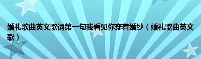 大家好,我是小科,我来为大家解答以上问题。婚礼歌曲英文歌词第一句我看见你穿着婚纱,婚礼歌曲英文歌很多人还不知道,现在让我们一起来看看吧!