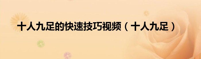 大家好,小联来为大家解答以上的问题。十人九足的快速技巧视频,十人九足这个很多人还不知道,现在让我们一起来看看吧!