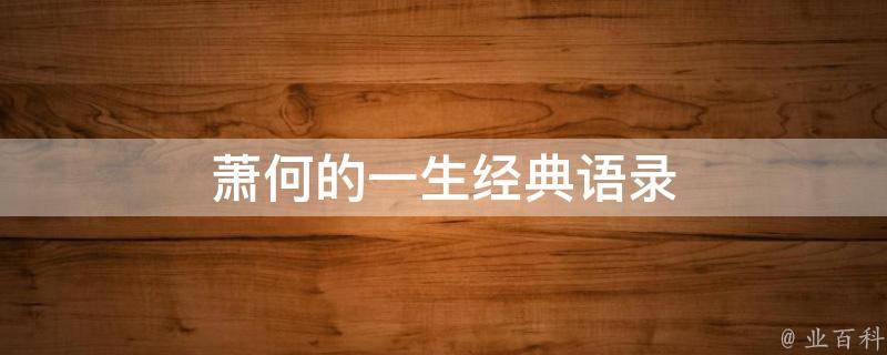 萧何的一生经典语录