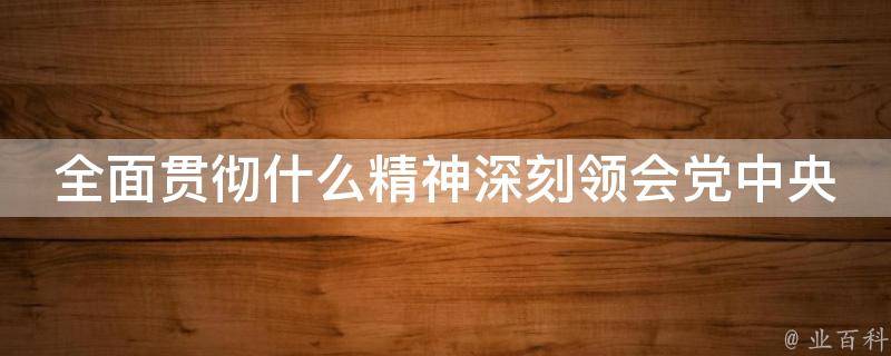全面贯彻什么精神深刻领会党中央