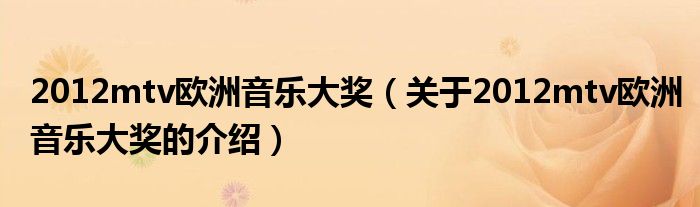 大家好,小夏来为大家解答以上的问题。2012mtv欧洲音乐大奖,关于2012mtv欧洲音乐大奖的介绍很多人还不知道,现在让我们一起来看看吧!