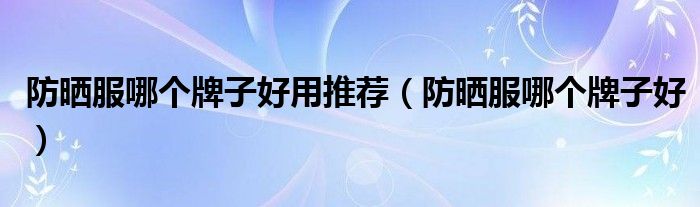 1、防晒服哪个牌子好,主要还是结合你自己的需求来看的,现在很多地方都有卖防晒服的吧,最方便的就是上某宝看看咯。