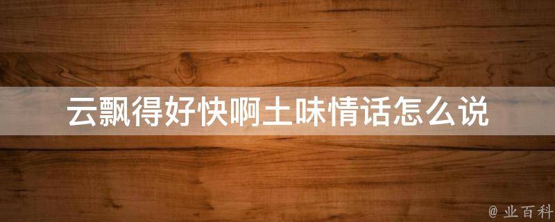云飘得好快啊土味情话可以说:云飘得好快啊,就像我心里的思念,一秒也不愿意等待,只想立刻飞到你的身边。土味情话是网络流行词,指那些听起来很肉麻很腻人又有些乡土感的情话。虽然听上去很腻人,但却很撩人。