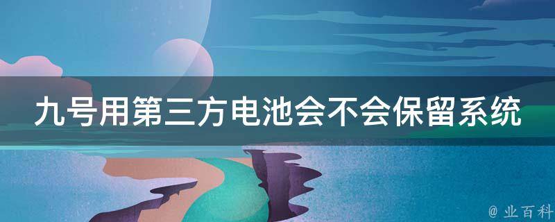 九号用第三方电池会保留系统。因为只是更换电池,不涉及车上数据和配置,换电池完成后,车辆的数据和配置还是保留在原来的系统中,换电池后可以继续使用,不会影响使用体验。第三方电池指的是非手机原厂原装电池,在许多电子设备中,例如手机、笔记本电脑和相机等,原厂电池通常由设备制造商生产并与其产品一起销售。
