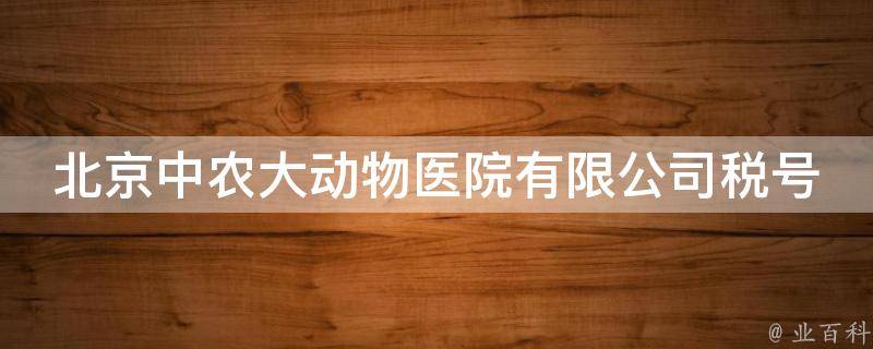 最佳答案北京中农大动物医院有限公司的税号是91110108669429067M。北京中农大动物医院有限公司于2013年01月15日成立,法定代表人是夏兆飞,公司经营范围包括:动物疾病预防、诊断、治疗和绝育手术;销售兽药;销售宠物食品、日用品;技术咨询;宠物美容等。