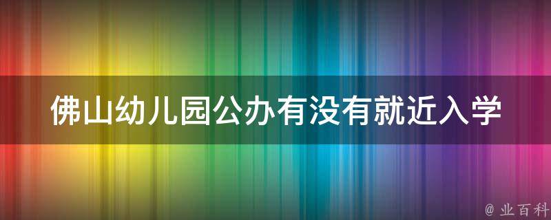 佛山公办幼儿园有就近入学。佛山公办幼儿园招生地段由各区教育行政部门根据本区实际,结合适龄儿童人数、学校分布和规模、交通状况等因素,按照相对就近原则,合理划定。各区教育行政部门要确保具有本区户籍的适龄儿童少年入读对口地段学校。