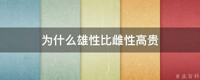 雄性不比雌性高贵。雄性和雌性在生物学上是平等的,它们各自承担着不同的角色和责任。在某些文化中,雄性被赋予更高的地位和尊重,但这是文化、社会和历史背景下的产物,而不是生物学上的事实。