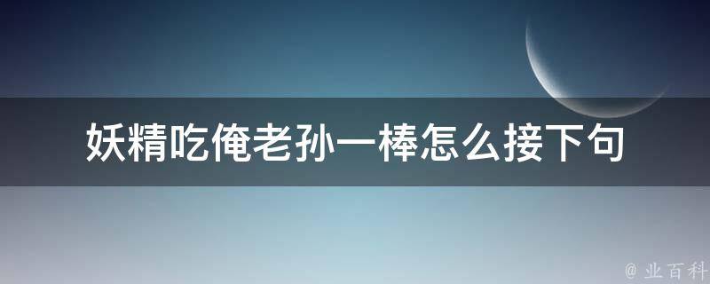 妖精吃俺老孙一棒下句可以接妖怪哪里跑。这些台词都是孙悟空在《西游记》中常常使用的,表达了他勇猛无畏、正义凛然的形象。孙悟空是中国古典神魔小说《西游记》中的主要角色之一,在历代民间神话里,被中国人奉为神明。