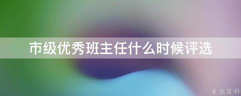 市级优秀班主任三年一评评选。市级优秀班主任是评选周期较长的,往往是三年一评,时间点各地区不太固定。优秀班主任深刻理解学生的需求和关注点,并能够及时给予关怀和支持。他们会主动倾听学生的问题和困扰,提供心理上的支持和指导,帮助他们解决学习和生活中的难题。