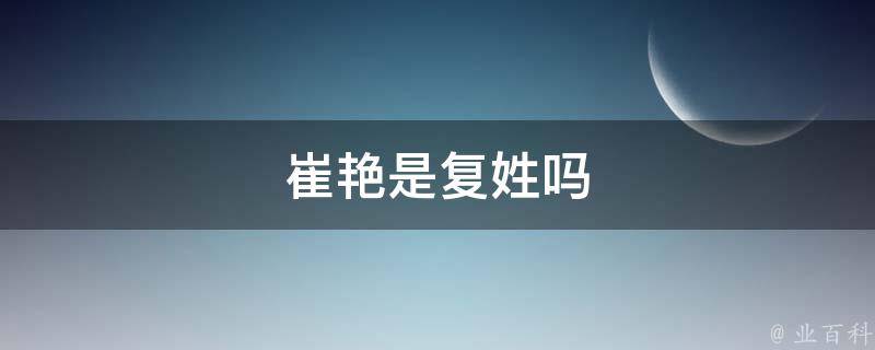 崔艳不是复姓。崔姓是中国、朝鲜和韩国的姓氏之一。崔姓曾长期是山东望族和全国大姓,其主要来源于姜姓,宋版《百家姓》中排第189位,没有复姓。历代名人有:清官崔篆、文学家崔骃、书法家崔瑗、政论家崔寔、诗人崔颢、崔护等。