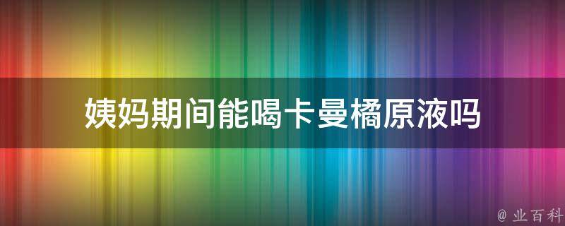 姨妈期间能喝卡曼橘原液,但需要适量。卡曼橘原液富含维生素C、膳食纤维和抗氧化剂,有助于提高免疫力、促进消化和改善肌肤健康。此外,卡曼橘原液还具有镇静和抗炎作用,可以缓解生理期带来的不适感。但是卡曼橘原液偏凉性,不建议过量饮用。