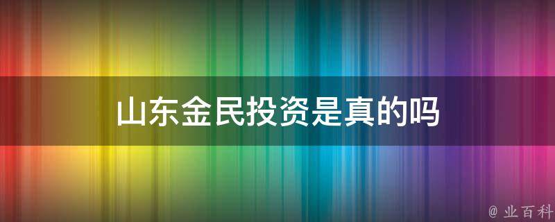 最佳答案山东金民投资是真的。山东金民投资管理有限公司,成立于2023-02-09,法定代表人为窦宪波,注册地位于山东省济南市历下区奥体西路2666号,经营范围包括:以自有资金从事投资活动;社会经济咨询服务;企业形象策划;会议及展览服务;市场调查(不含涉外调查);市场营销策划;办公用品销售;电子产品销。