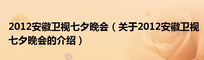 大家好,小夏来为大家解答以上的问题。2012安徽卫视七夕晚会,关于2012安徽卫视七夕晚会的介绍很多人还不知道,现在让我们一起来看看吧!