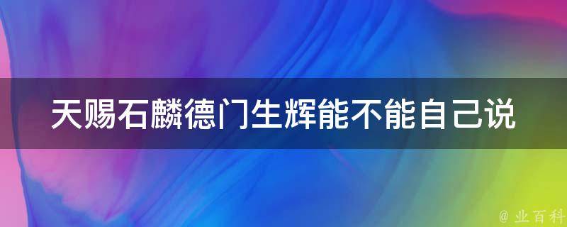 天赐石麟德门生辉不能自己说。天赐石麟,德门生辉的意思是:祝贺生了一个聪明文采的男孩,让有德行的门庭,也产生了光辉。这句话通常用于恭祝别人喜得贵子,是对新生儿的美好祝愿,不适合自己说这句话。