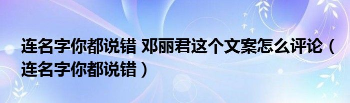 大家好,我是小科,我来为大家解答以上问题。连名字你都说错 邓丽君这个文案怎么评论,连名字你都说错很多人还不知道,现在让我们一起来看看吧!