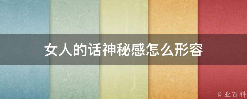 女人的话神秘感可以词语深藏不露、飘忽不定、捉摸不透形容。深藏不露的意思是隐藏自身的才学、技艺,而不表现出来。飘忽不定是指变幻无常、动荡不定。捉摸不透的意思是难以捉摸、难以猜测、难以预料。同义词是捉摸不定。