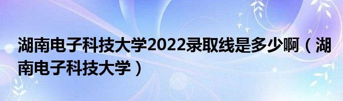 大家好,我是小科,我来为大家解答以上问题。湖南电子科技大学2022录取线是多少啊,湖南电子科技大学很多人还不知道,现在让我们一起来看看吧!