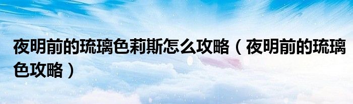 大家好,我是小科,我来为大家解答以上问题。夜明前的琉璃色莉斯怎么攻略,夜明前的琉璃色攻略很多人还不知道,现在让我们一起来看看吧!