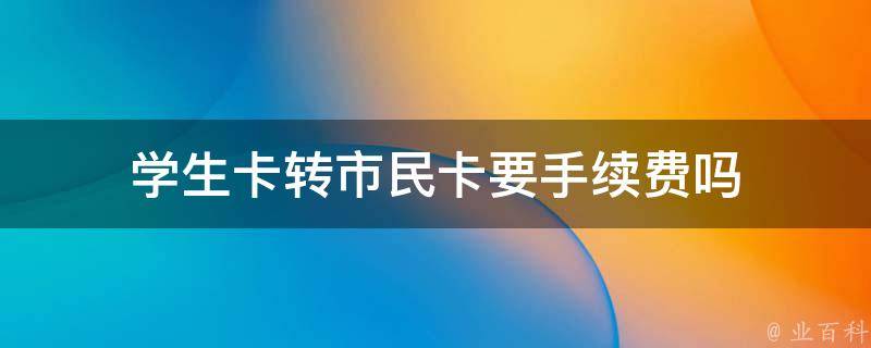 学生卡转市民卡不要手续费,只要携带身份证原件去营业网点办理即可。但是,具体的转换方式和政策可能因地区和具体规定而有所不同。在转换前,建议咨询当地相关部门或机构了解具体的转换政策和要求。