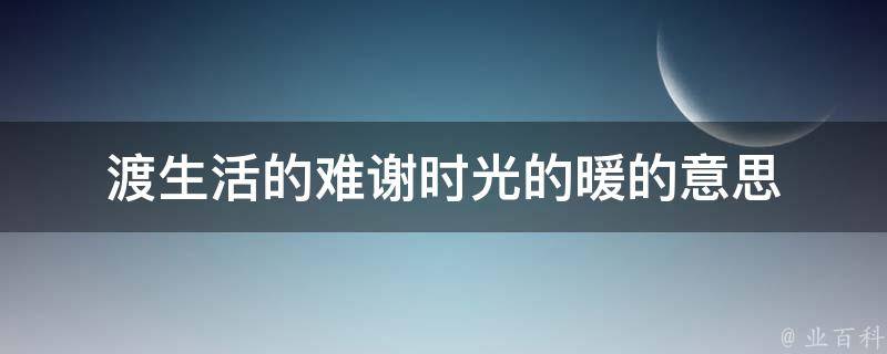 渡生活的难,谢时光的暖的意思是:在面对生活中的困难和挑战时,我们要学会坚强和勇敢,克服困难,迎接生活的挑战。同时,也要感激时间带给我们的温暖和美好,感谢那些给予我们支持和帮助的人和事,珍惜和感恩生活中的每一个美好瞬间。