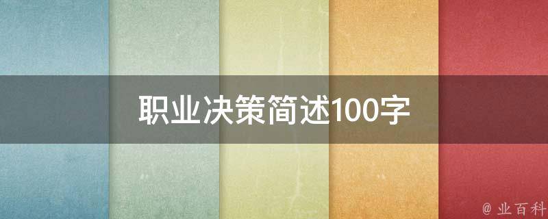 职业决策是个人根据自身兴趣、技能和价值观,在多个职业选项中做出最适合自己的选择。它涉及对自身能力和市场需求的评估,以及与职业目标的匹配程度。正确的职业决策有助于实现个人职业发展和人生价值。